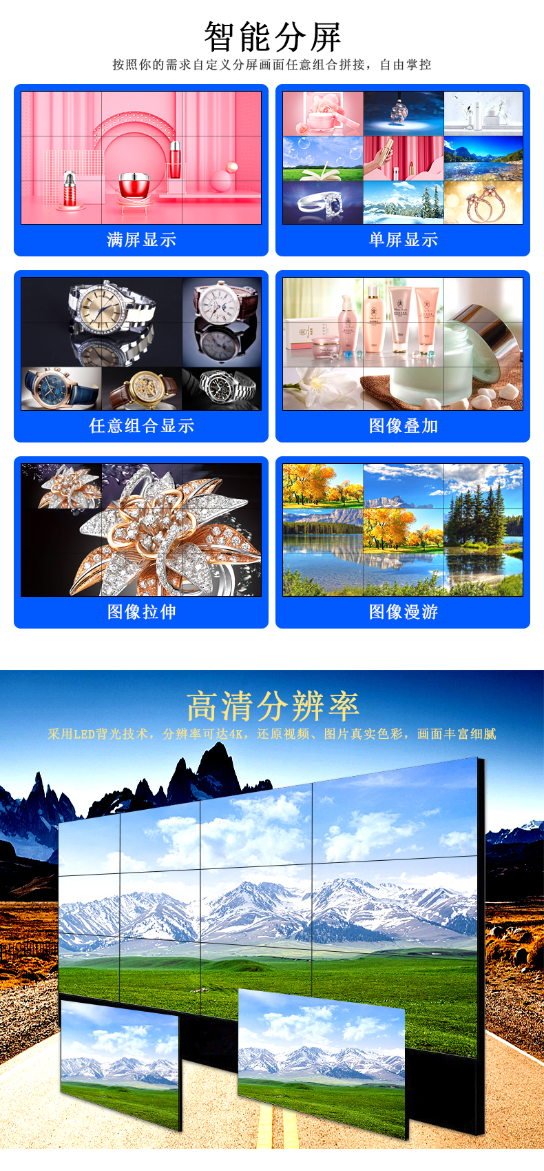 【美佳愛-4k液晶拼接屏生產(chǎn)廠家電話400-997-9971】原裝LG49寸液晶拼接屏1.8mm500cd產(chǎn)品通過ISO9001_3C_節(jié)能認(rèn)證等30多項(xiàng)認(rèn)證,主營LG/京東方/三星大屏幕電視墻,其尺寸有32寸40寸43寸46寸49寸55寸65寸75寸液晶拼接單元,也有曲面,弧形,柔性,無縫LED顯示屏,顯示器,超窄邊高清監(jiān)視器,提供企業(yè)展廳展示,KTV,酒吧,會議室,視頻監(jiān)控系統(tǒng)解決方案設(shè)計-報價-安裝施工-售后超窄邊維修等服務(wù)