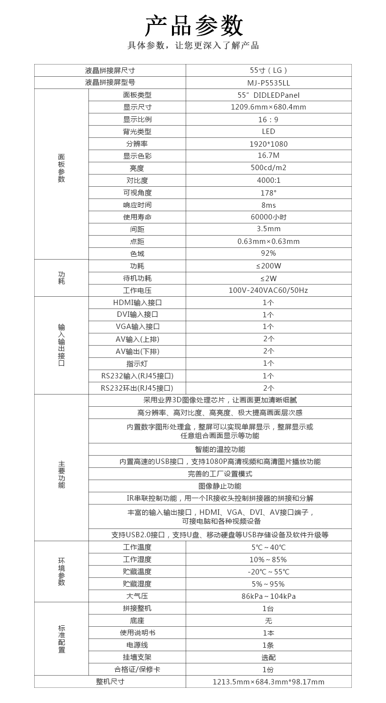 整機 | 屏幕尺寸 | 55寸(三星 LG)可選 |