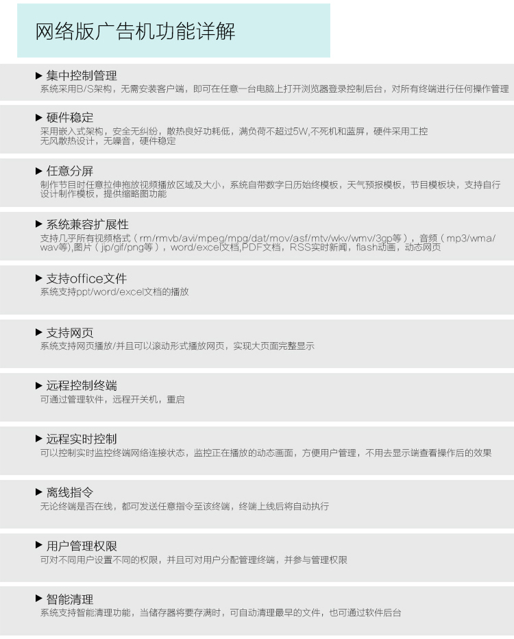 - 安裝方式:壁掛式,可橫屏安裝也可豎屏安裝
