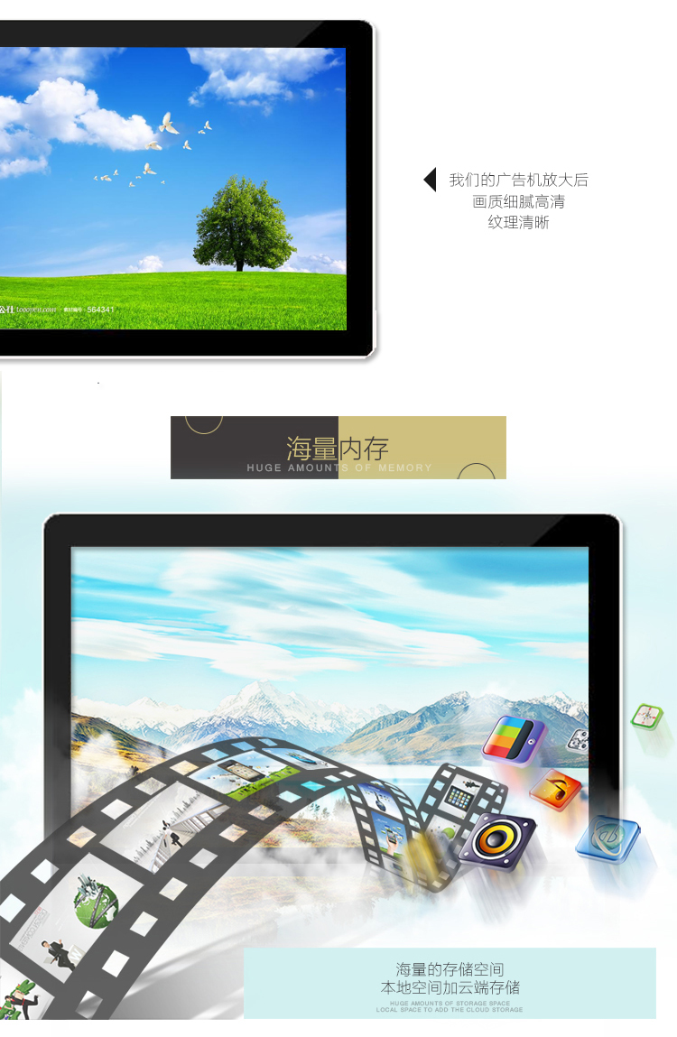 - 安裝方式:壁掛式,可橫屏安裝也可豎屏安裝
