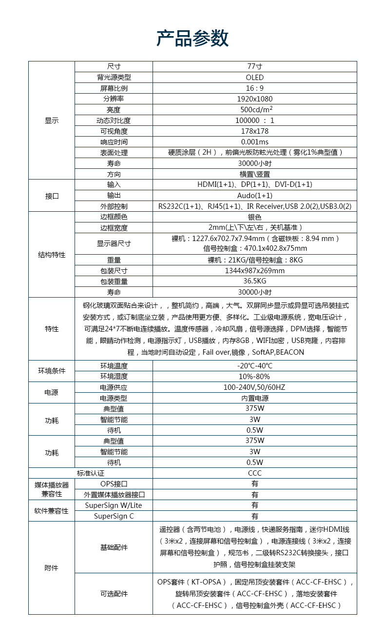 77寸超薄OLED雙面吊掛廣告機(jī)