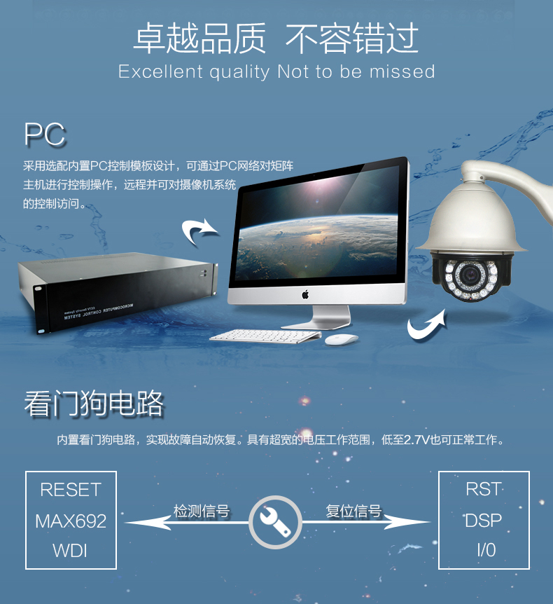 ★ 內(nèi)置控制碼分配器,無(wú)需轉(zhuǎn)換器即可直接控制智能高速球;實(shí)現(xiàn)了控制信號(hào)的放大,增加了系統(tǒng)的整體控制距離,同時(shí)實(shí)現(xiàn)了控制信號(hào)的分區(qū)隔離,某路設(shè)備出現(xiàn)故障不影響其它設(shè)備;