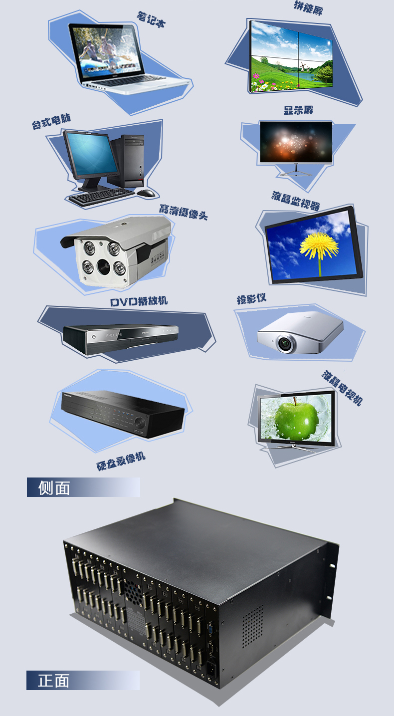 輸入路數(shù):4路,8路,12路,16路,24路,32路,36路,46路,48路,64進(jìn);輸出路數(shù):4出,8出,12出,16出,24出,32出,36出,45出,48出,64出,128輸出DVI矩陣切換器