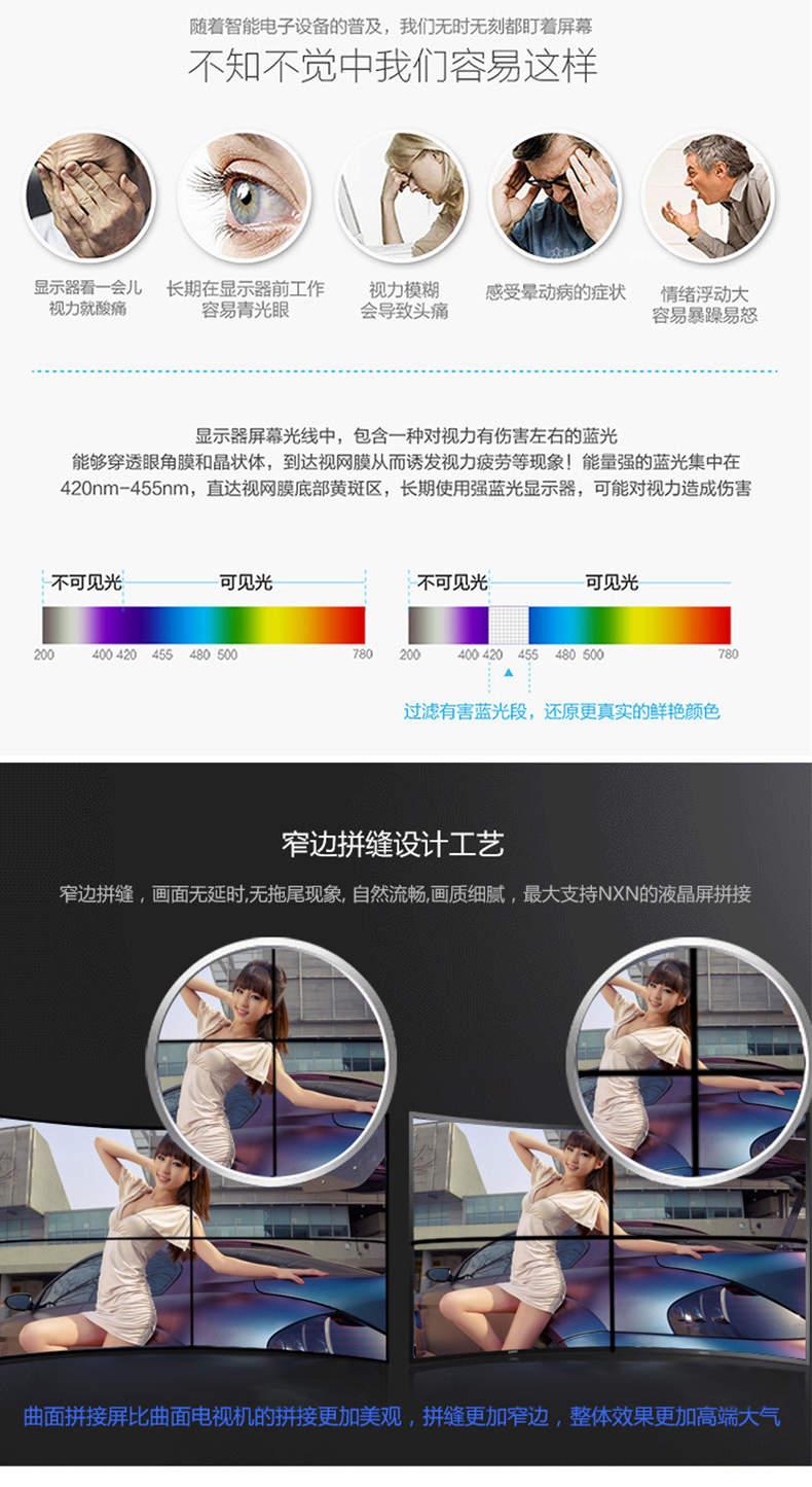 【美佳愛-4k液晶拼接屏生產(chǎn)廠家電話400-997-9971】高清曲面液晶拼接屏產(chǎn)品通過ISO9001_3C_節(jié)能認(rèn)證等30多項(xiàng)認(rèn)證,主營(yíng)LG/京東方/三星大屏幕電視墻,其尺寸有32寸40寸43寸46寸49寸55寸65寸75寸液晶拼接單元,也有曲面,弧形,柔性,無(wú)縫LED顯示屏,顯示器,超窄邊高清監(jiān)視器,提供企業(yè)展廳展示,KTV,酒吧,會(huì)議室,視頻監(jiān)控系統(tǒng)解決方案設(shè)計(jì)-報(bào)價(jià)-安裝施工-售后超窄邊維修等服務(wù)