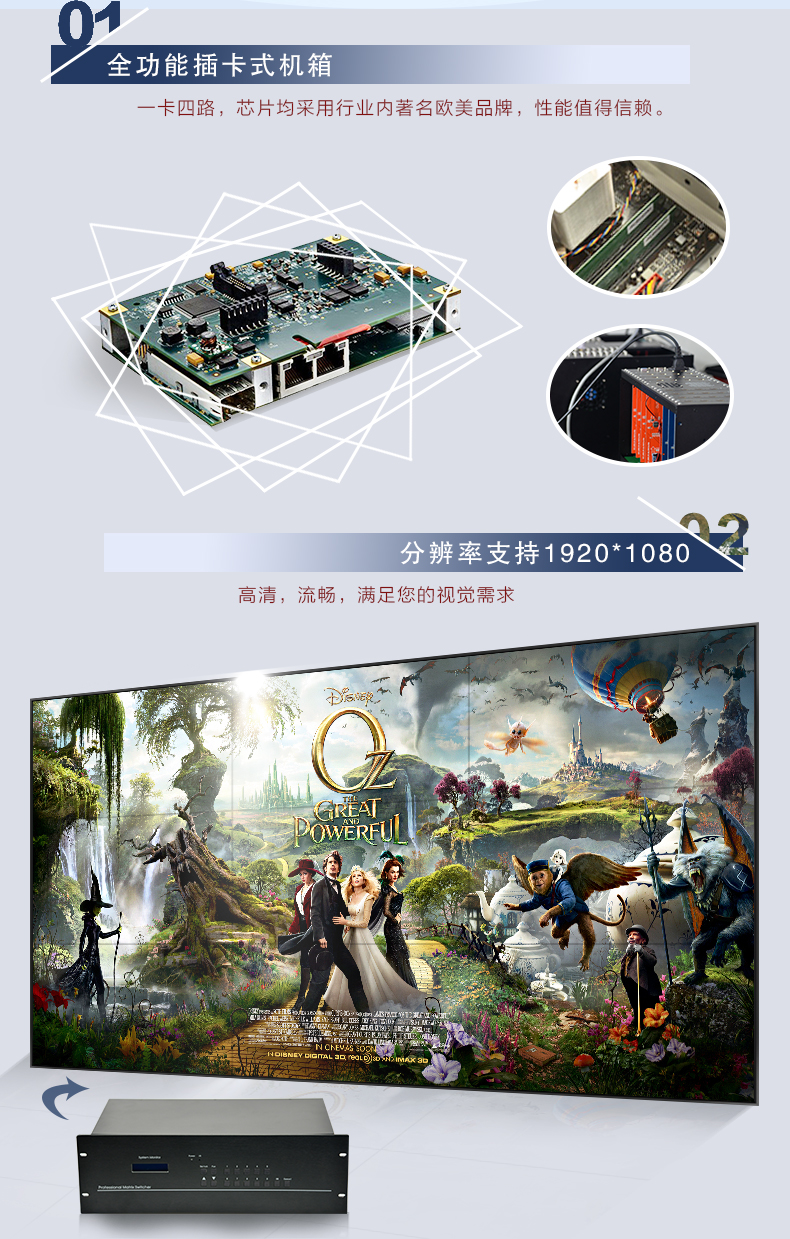 12.插卡式結構設計,采用每張卡4個通道的設計,可靈活配置輸入輸出信號類型及信號通道數(shù),擴展方便,維護便捷,主機可以同時兼容不同的信號, 可以配置AV、VGA、 YPbPr、 DVI、HDMI、HD-SDI、光纖、網(wǎng)絡等不同的輸入輸出板卡,互不干擾,同時傳輸;
